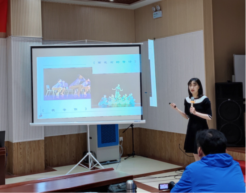 青年教师赵世莹以《民族民间舞—抚宁太平鼓单元课》为题,依托河北地域民间文化,立足本土,扎根民间,充分挖掘整理抚宁太平鼓元素,结合课堂训练内容,系统的梳理了秦皇岛抚宁太平鼓的审美风格和表演特色,并向大家展示了抚宁太平鼓课堂教学的基本内容及综合性表演组合。