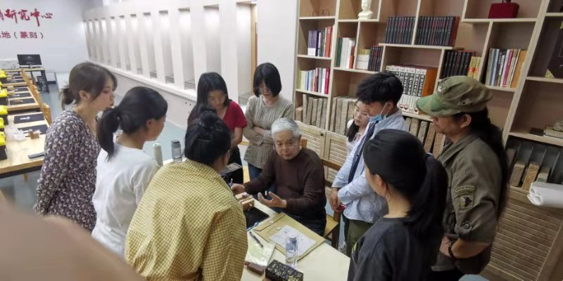 5月17日足球竞猜平台篆刻艺术教育研究基地邀请秦皇岛市篆刻艺术家刘铁峰先生来我院为2020级美术学专业研究生进行第二次授课,并与学生和教师进行了制作方面的心得交流。