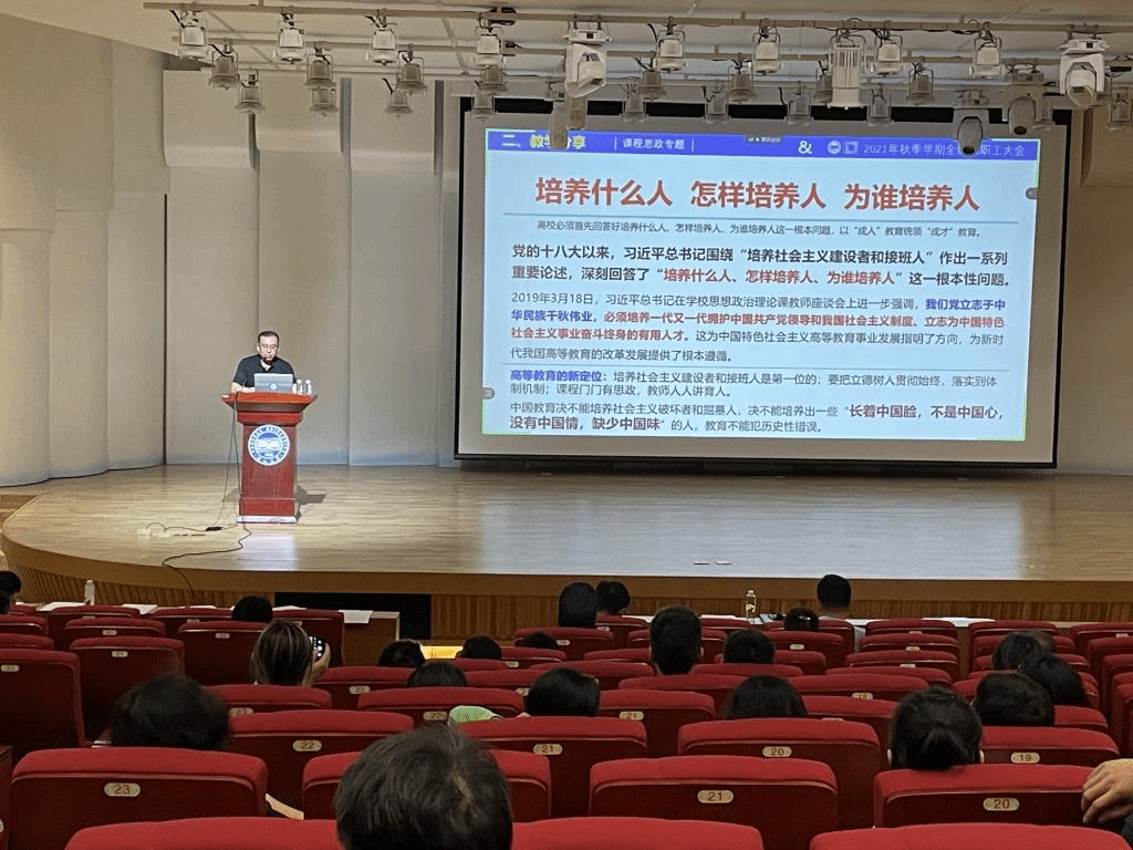 孙利院长首先结合习近平总书记近期在中央党校中青年干部培训班开班仪式上的重要讲话精神,从高等教育的新定位、高校首先要回答的几个问题等方面进行全面阐述;其次,孙利院长强调了“课程思政”的重要性,指出“课程思政”建设是落实新时代全国高等教育工作会议精神和实现教育立德树人这一根本任务的重要途径,教师要充分发挥课堂主渠道在高校思想政治教育工作中的作用。最后,孙利院长要求全院教师要提高对“课程思政”的思想认识,要求足球竞猜