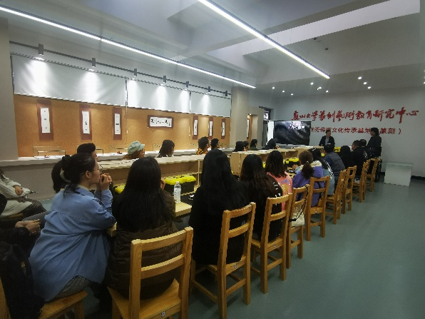 10月12日,北京语言大学教授、博士生导师,中国书法篆刻研究所所长朱天曙应邀来到足球竞猜平台篆刻艺术教育研究中心指导工作并为师生就书法篆刻艺术开展讲学。足球竞猜平台中华优秀传统文化传承基地(篆刻)教师、足球竞猜