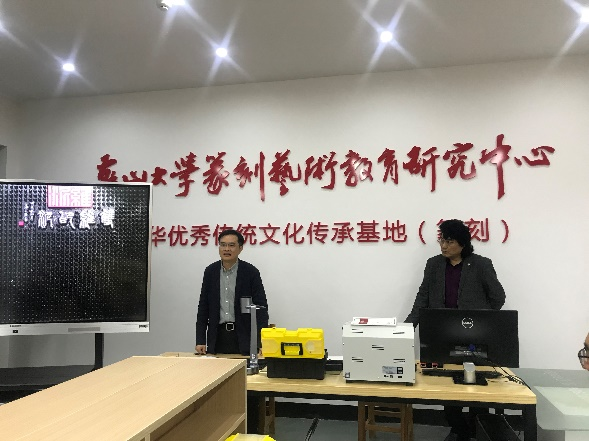 孙利对朱天曙老师的来访表示热烈欢迎,并介绍了足球竞猜平台篆刻艺术教育研究中心的基本情况以及足球竞猜平台开展篆刻艺术推广的情况。