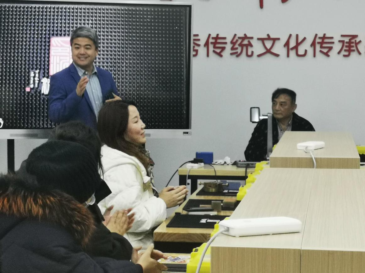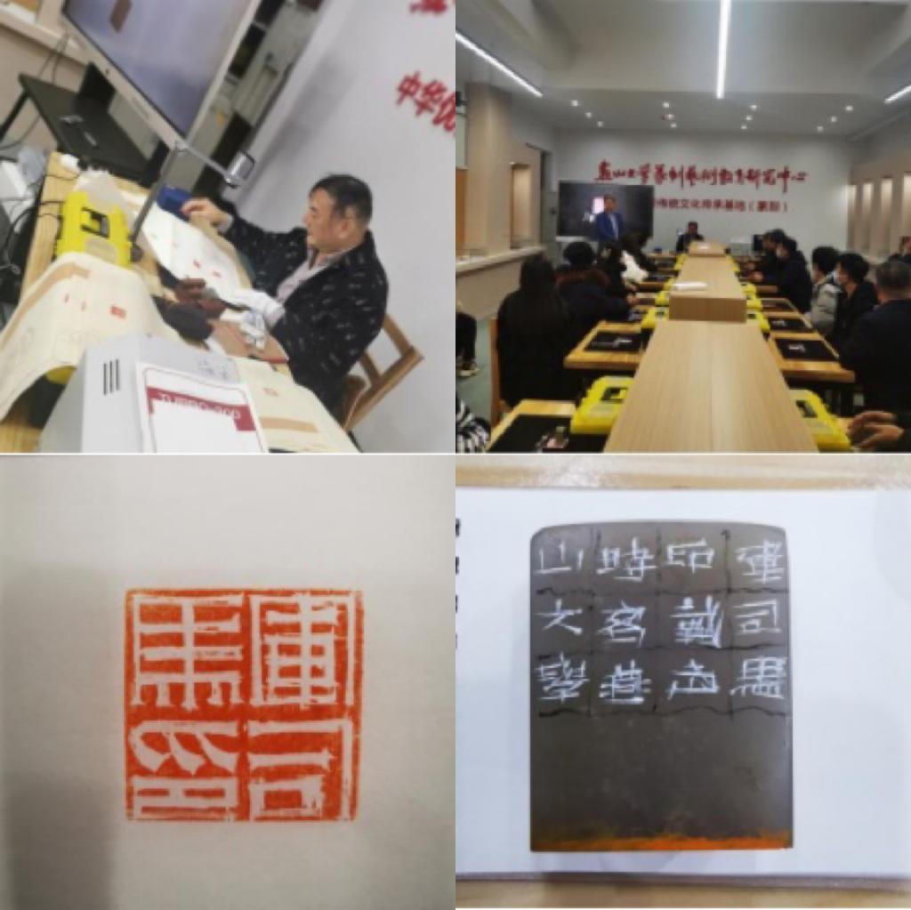 和基地对各位专家的到来表示欢迎并向各位专家汇报了篆刻基地的基本情况以及足球竞猜平台篆刻艺术传承工作的开展情况。