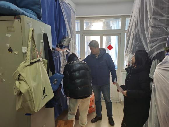 教学楼,老师们展开了细致的安全检查,围绕环境卫生、用水用电安全对本科生、研究生所有专业教室、考研自习室等可能存在安全隐患的地方进行排查,并对教室粘贴封条实行封闭管理。1月5日,在学生公寓,老师们就学生寝室是否存在违规使用大功率电器、私拉乱接电线、电动车违规充电等问题,以及防水、防火、防盗等情况开展了认真的排查。