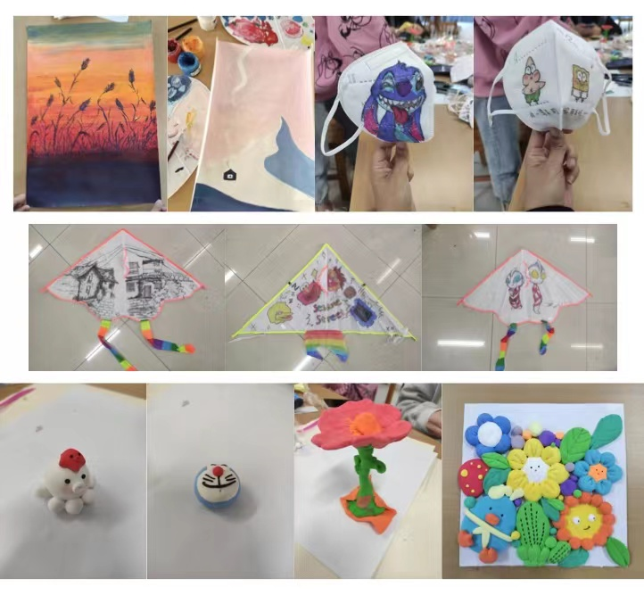 活动分为线下、线上两种模式,上午、下午和晚上三个单元,内容包括黏土手工制作、水粉画、趣味口罩设计、风筝手绘等,将力求美育体验和动手实践相结合。同学们积极参与,表现出色,认真学习相关知识、积极进行团队合作,创作出了一件又一件艺术作品。活动中,精心设计的相关美学知识及技能的讲授和交流单元,使同学们对相关艺术知识了有更进一步的了解;动手实践创作单元锻炼了同学们感受美、认识美、创造美的能力。
