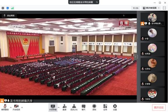 学生组织骨干、优秀团员代表于美术馆A101室集中观看现场直播,各团支部采用云会议形式线上观看。